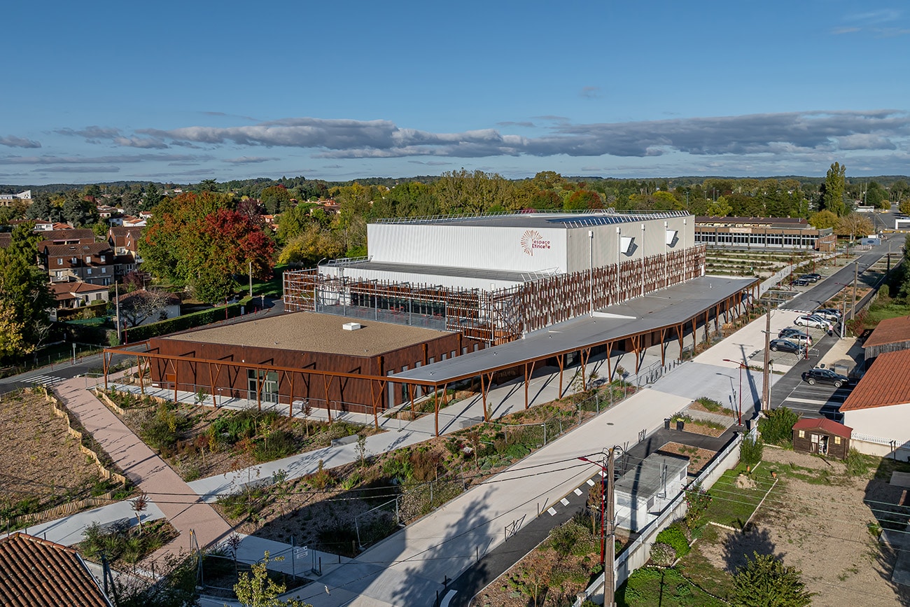 La construction du Centre Evènementiel du Bergeracois a débuté en intégrant également des aménagements extérieurs comme des places aménagées, des recharges pour les véhicules électriques, des parkings pour les vélos, des espaces verts, etc,…la fin du chantier est prévue pour octobre 2025.