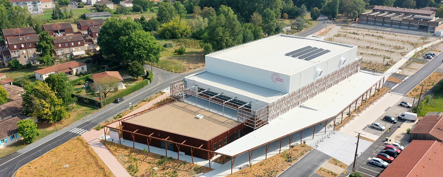 La construction du Centre Evènementiel du Bergeracois a débuté en intégrant également des aménagements extérieurs comme des places aménagées, des recharges pour les véhicules électriques, des parkings pour les vélos, des espaces verts, etc,…la fin du chantier est prévue pour octobre 2025.