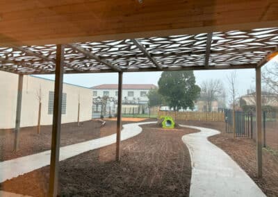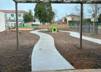 • Des jeux conçus pour cet espace extérieur permettent de multiplier les expériences motrices et autonomes supplémentaires.