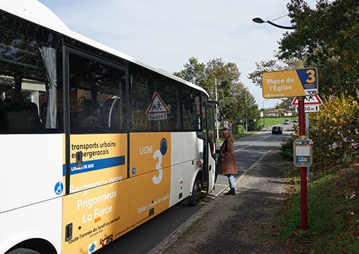 - Les Transports Urbains Bergeracois : Le réseau de bus de la CAB se compose de trois lignes de transports, entièrement gratuites, qui permettent de relier Bergerac Centre à des zones d’activités économiques (La Cavaille et les Trois Vallées) tout en rejoignant également des bassins de vie importants. La ligne 3, opérationnelle depuis septembre 2024, relie Bergerac à La Force via Prigonrieux.