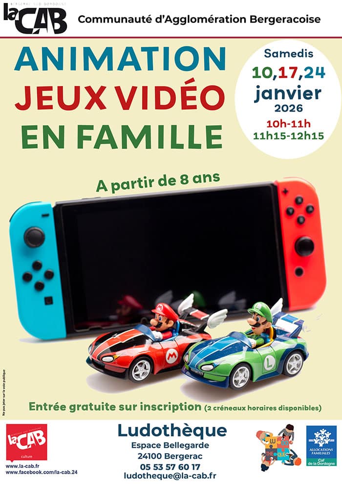 ANIMATION JEUX VIDÉO EN FAMILLE : Venez jouer avec votre enfant. A partir de 8 ans.