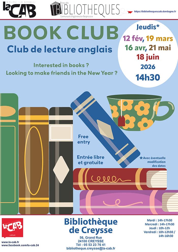BOOK CLUB : club de lecture en anglais. Interested in books ? Looking to make friends in the New Year ?
