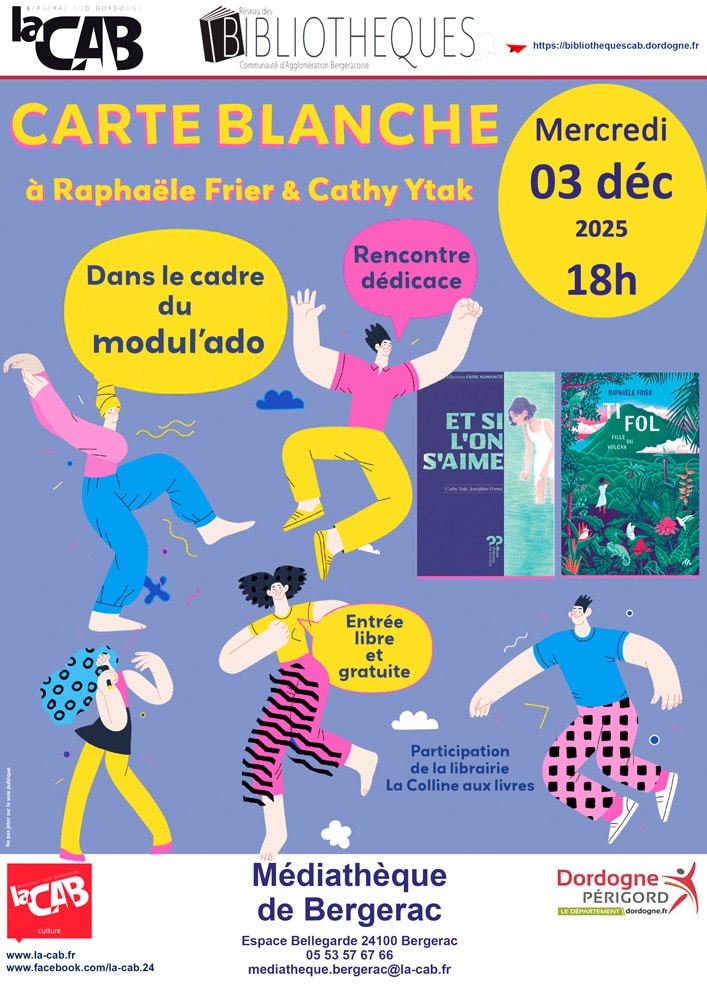 CARTE BLANCHE ET DÉDICACE : avec les auteures Raphaële Frier & Cathy Ytak. Participation de la librairie La Colline aux livres.