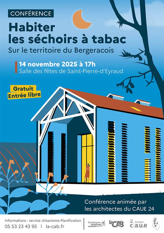 Animée par les architectes du CAUE de la Dordogne, cette rencontre portera sur la réhabilitation des anciens séchoirs à tabac, patrimoine emblématique du Bergeracois.