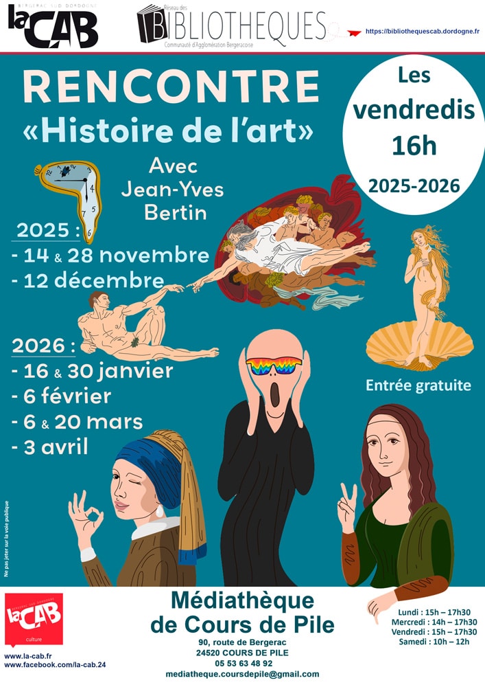 HISTOIRE DE L’ART : Rencontres “histoire de l’art” avec Jean-Yves Bertin les vendredis à 16h.