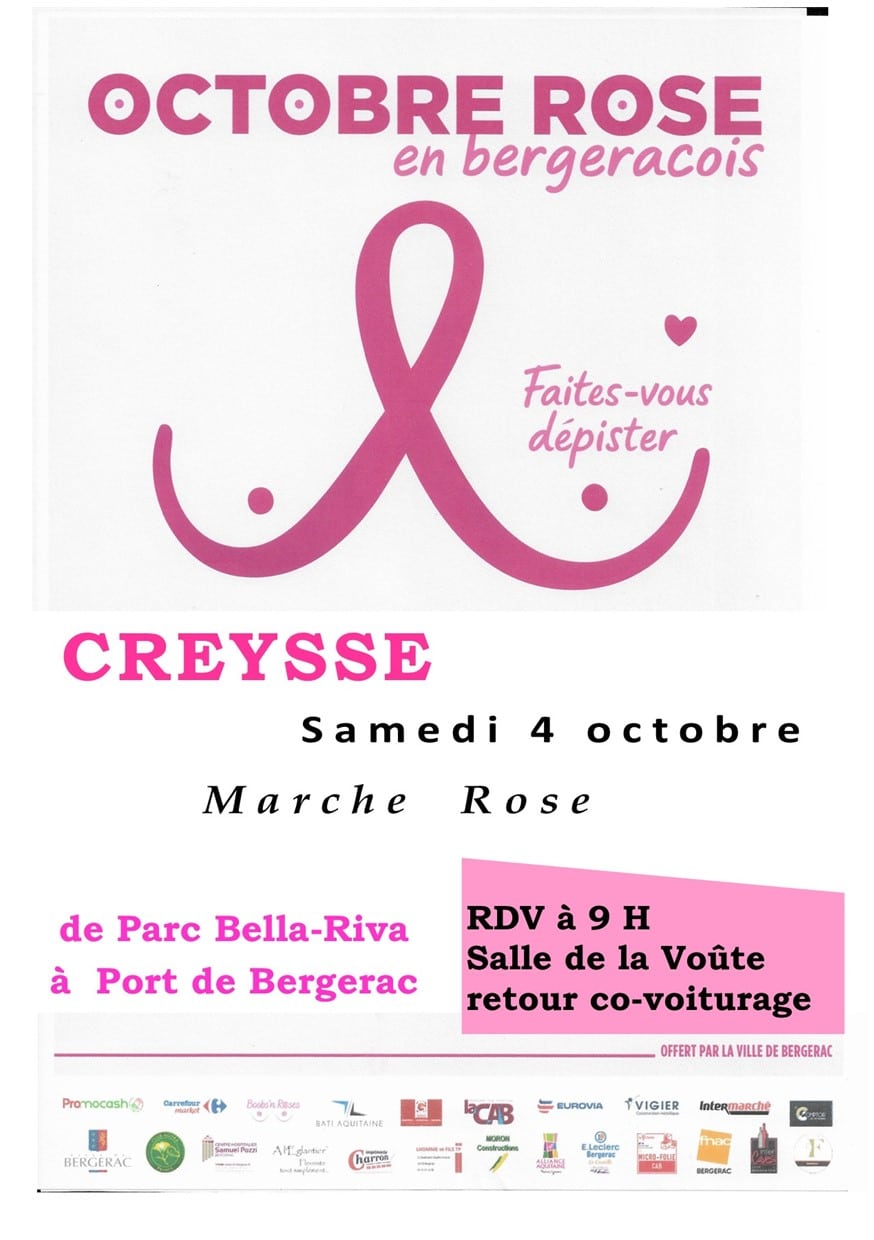 La commune s’engage une nouvelle fois pour Octobre Rose avec une marche solidaire le samedi 4 octobre, au départ de Creysse avec arrivée au port de Bergerac.