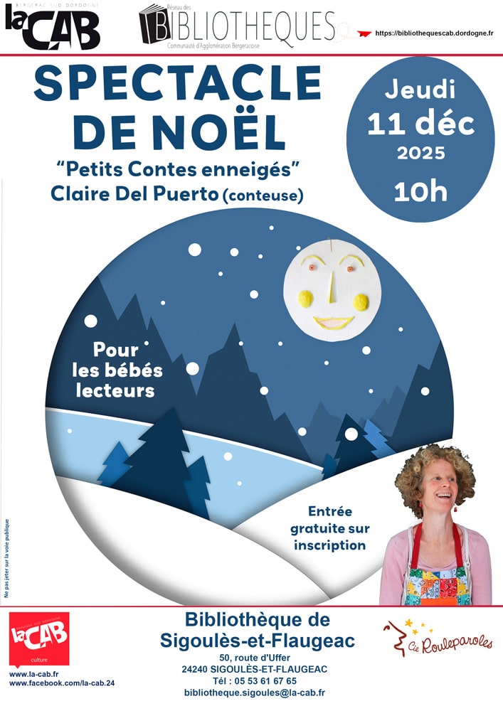 SPECTACLE DE NOËL DES BÉBÉS LECTEURS : “Petits Contes enneigés” Claire Del Puerto (conteuse). (https://www.rouleparoles.org/catalogue/11/claire-del-puerto-lot-et-garonne.html)
