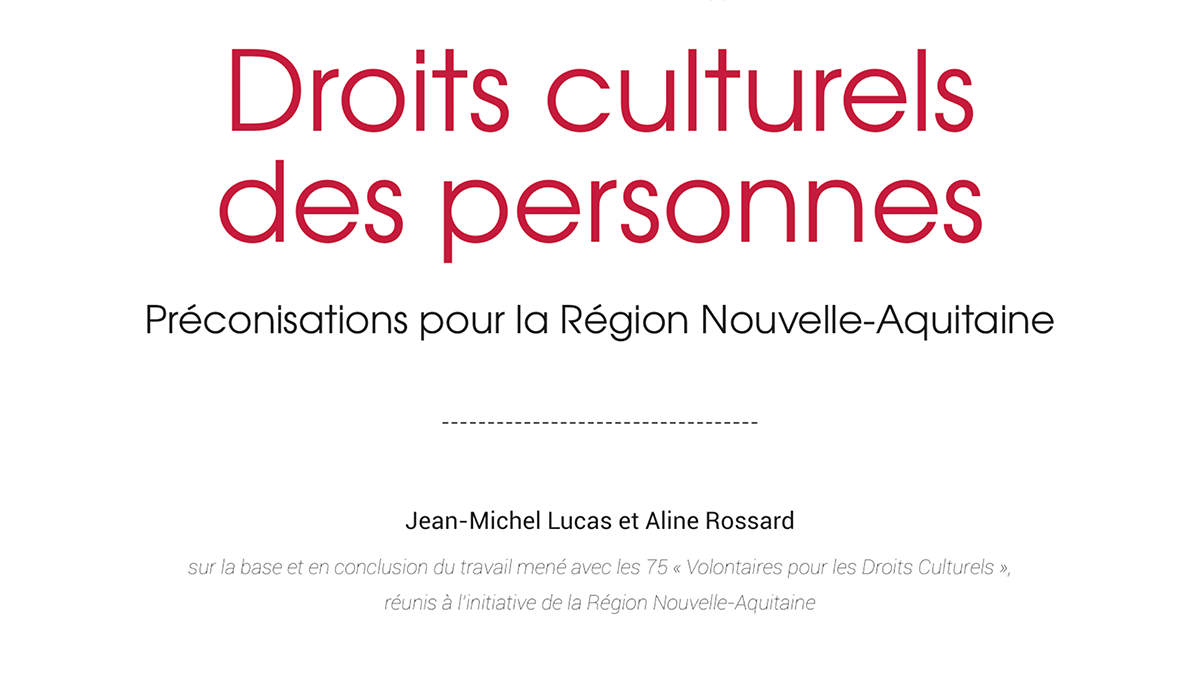 - Mars 2019, Jean Michel Lucas (expert et militant en droits culturels) et Aline Rossard (chargée de mission « droits culturels des personnes » Ligue de l’enseignement Nouvelle Aquitaine) délivrent le rapport sur les Droits Culturels à la région. Fruit d’une réflexion collective de plus de 75 personnes et de 40 organisations. 32 préconisations y sont inscrites.